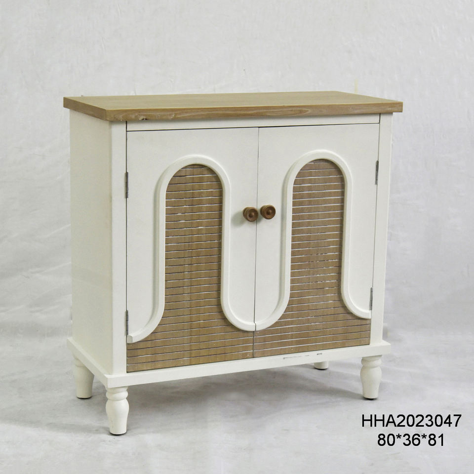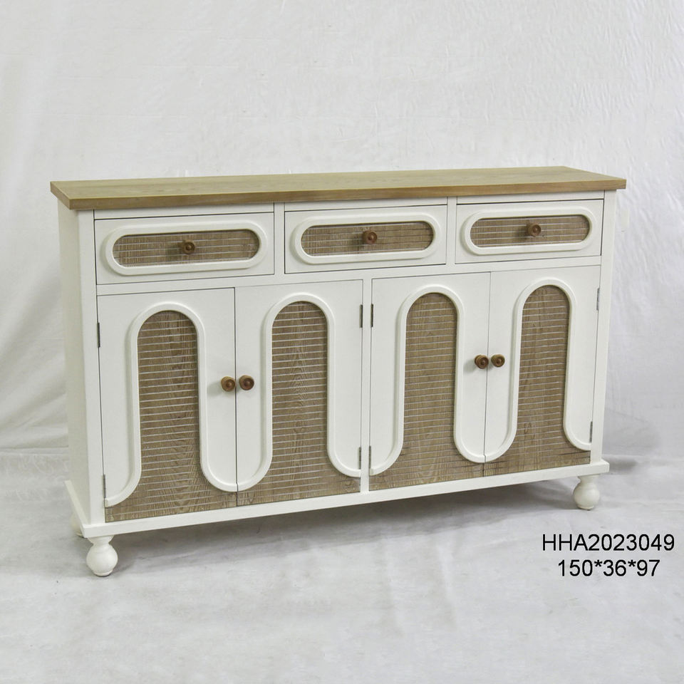 ตู้เก็บของไม้เนื้อแข็งสีขาวสไตล์ยุโรปแบบฟาร์มเฮาส์ ทนทาน ดีไซน์โบราณ สำหรับห้องนั่งเล่น พร้อมลิ้นชักและบานประตูสองบาน