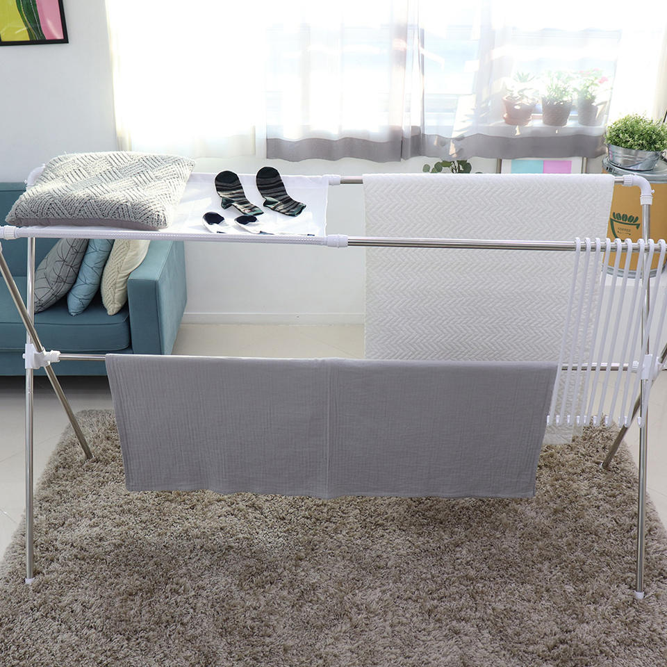 การออกแบบพับได้, โครงสร้างทรง X ที่มั่นคง, โครงสร้างประหยัดพื้นที่, น้ำหนักเบาและพกพาได้, พื้นที่ตากแห้งขนาดกว้าง, ติดตั้งและจัดเก็บได้ง่าย, การใช้งานซักรีดในร่มลักษณะ