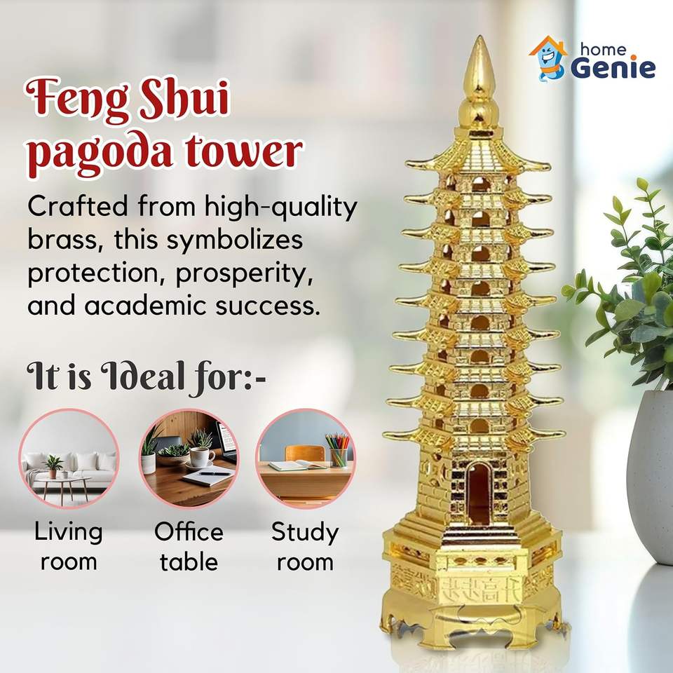 หอเจดีย์ทองเหลืองฮอมเจนี่ สำหรับเสริมฮวงจุ้ย | หอการศึกษาเพื่อความมั่งคั่งและความเจริญรุ่งเรือง | ของตกแต่งแก้ไขฮวงจุ้ยและวัตสุ