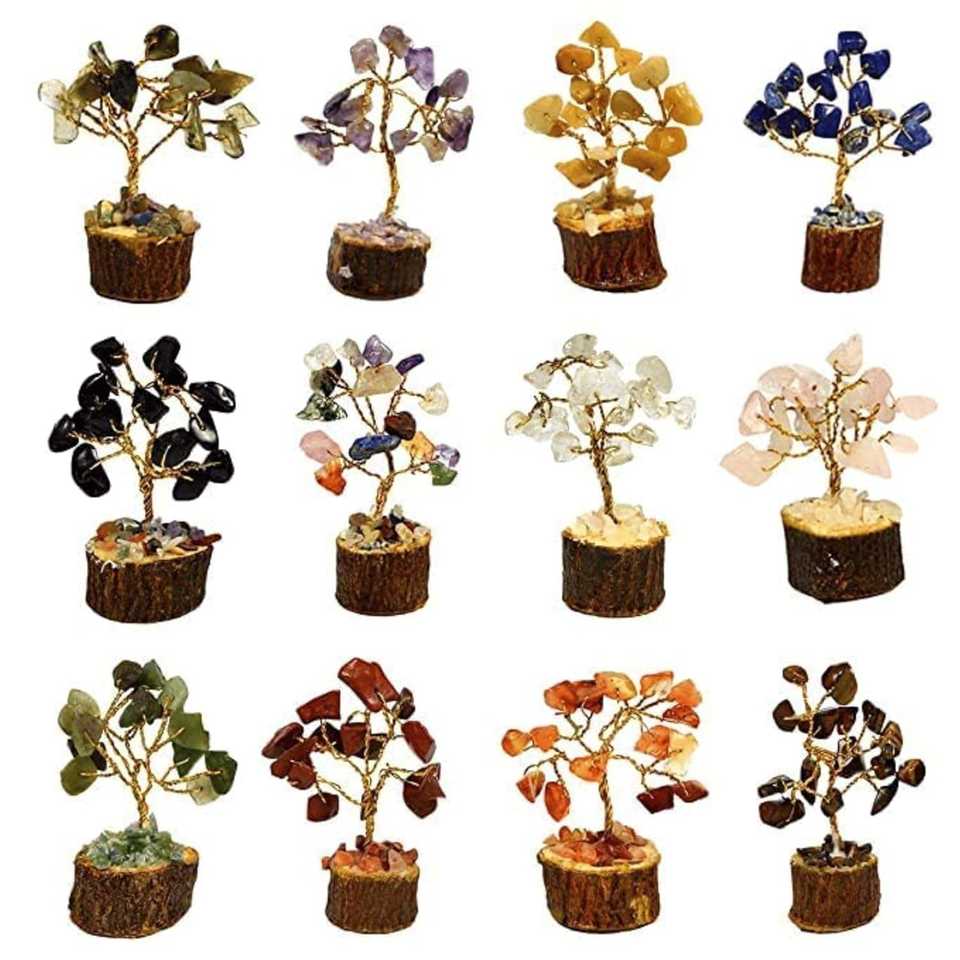 ชุดต้นบอนไซพลอยขนาดเล็กในบ้าน Genie แพ็ค12ต้นคริสตัลหลากสีสำหรับตกแต่งต้นพลอย Vastu และต้นอัญมณีฮวงจุ้ย