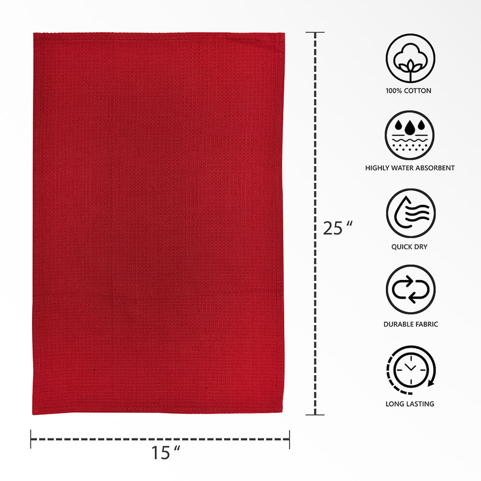 ชุด4ชิ้น15 "X25" สีแดงทึบย้อมผ้าขนหนูชาวาฟเฟิล100% ผ้าฝ้าย180-200 GSM ทอมือโดยผู้ผลิตอินเดีย