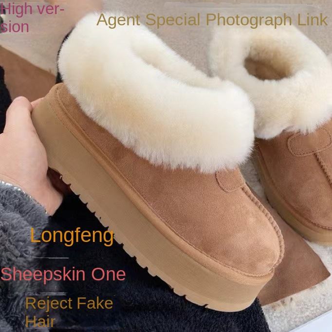 รองเท้าบูทหุ้มข้อผู้หญิง HONGCHEN สำหรับฤดูหนาว ทำจากขนสัตว์ พื้นหนา กันหิมะ สวมใส่ง่าย ระบายอากาศได้ดี ให้ความอบอุ่นด้วยผ้าฝ้ายหนานุ่ม