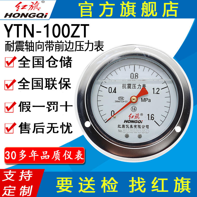 เกจวัดแรงดันแบบอนาล็อก HONGQI 100 มม. รุ่น YTN-100ZT ทนแรงกระแทก ข้อต่อ M20*1.5