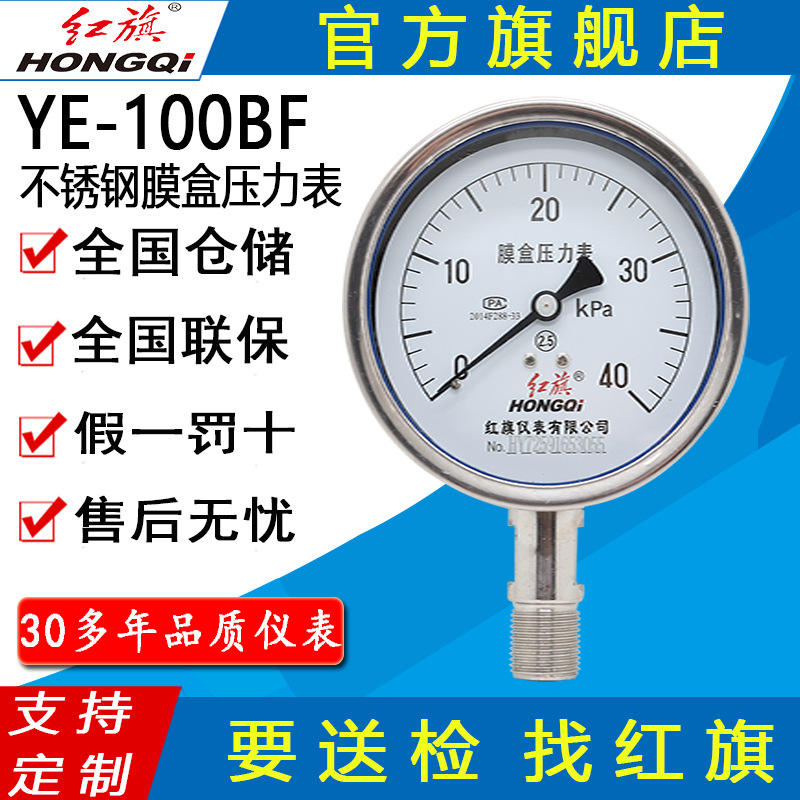 HONGQI Diaphragm Pressure Gauge 100MM YE-100BF YEN-100BF Stainless Steel M20*1.5 kPa Accuracy 2.5
