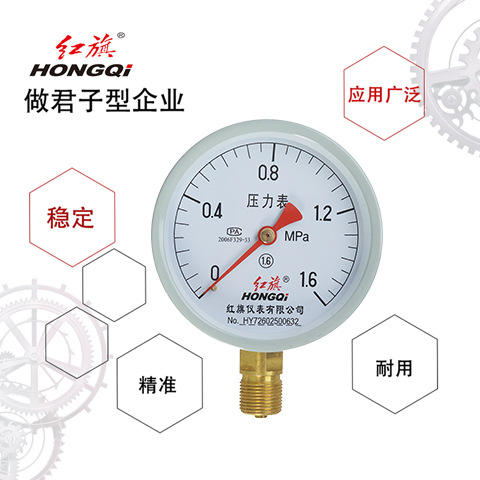 เกจวัดแรงดัน HONGQI รุ่น Y-100 ขนาด 100 มม. ความแม่นยำระดับ 1.6 ข้อต่อทองเหลือง M20*1.5 แบบธรรมดา