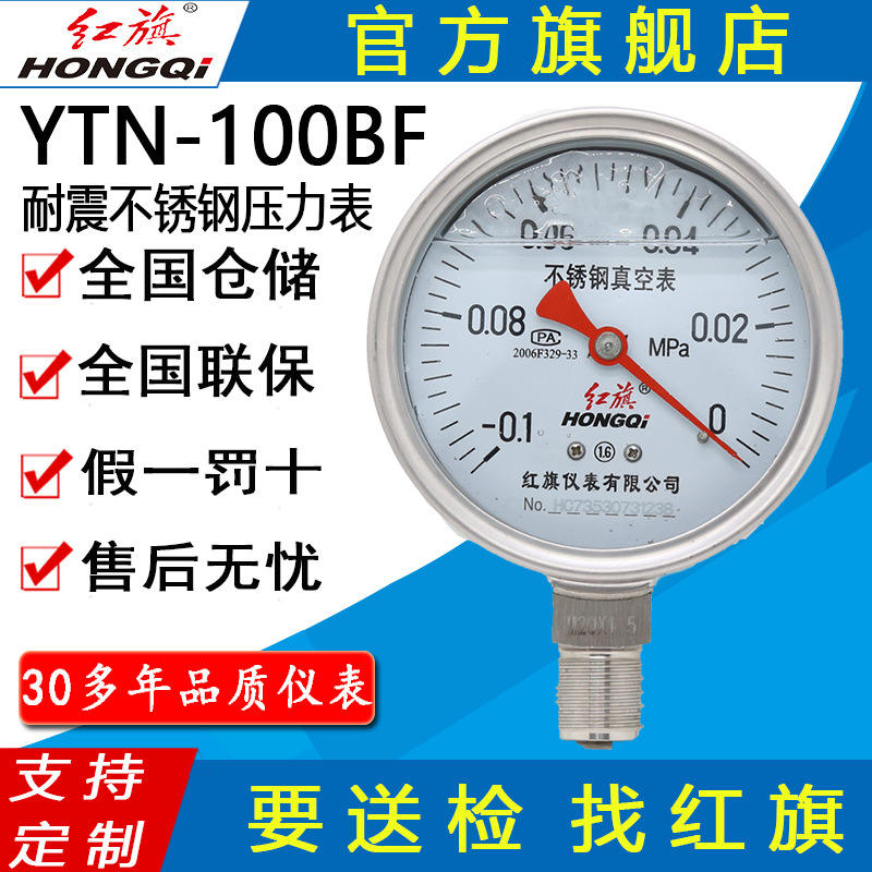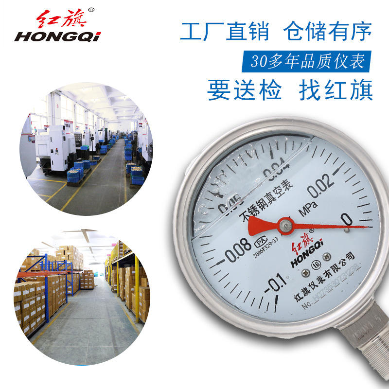 เกจวัดแรงดันสแตนเลสกันกระแทก HONGQI ขนาด 100 มม. เกลียว M20*1.5 ช่วงการวัด -0.1-60MPa ความแม่นยำ 1.6 สำหรับใช้งานในอุตสาหกรรม