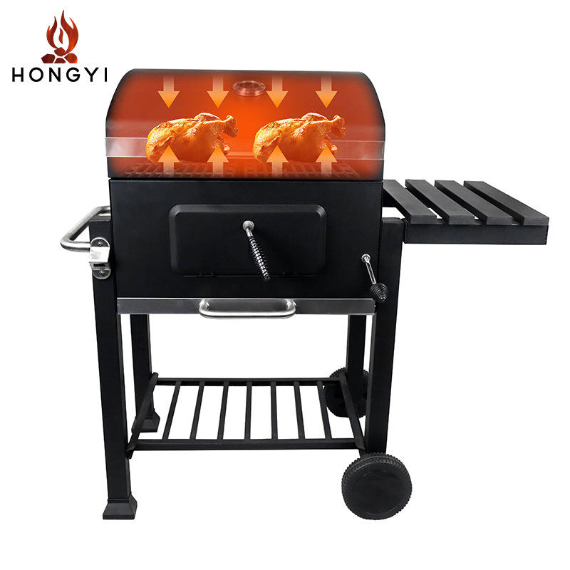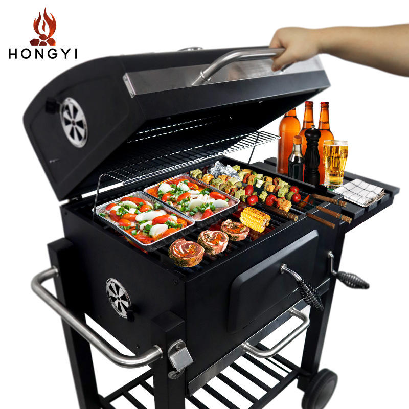 เตาบาร์บีคิวถ่านขนาดใหญ่พิเศษ HONGYI สำหรับ 10+ คน พร้อมรถเข็นสำหรับสวนกลางแจ้ง ดีไซน์ทันสมัย คุณภาพเยี่ยม