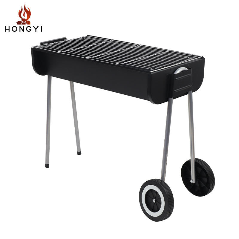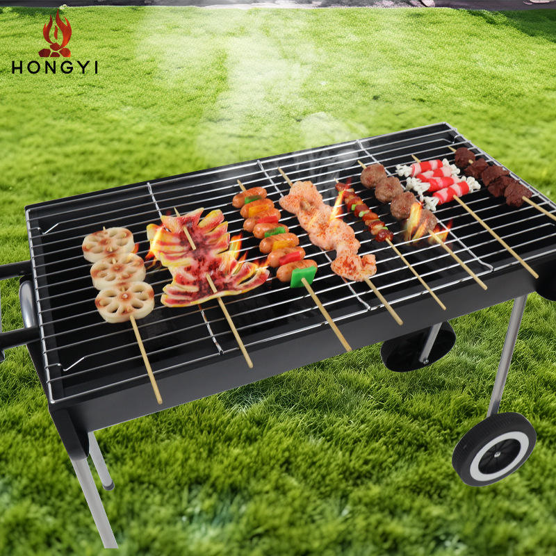 เตาบาร์บีคิวถ่านกลางแจ้ง HONGYI แบบมีล้อเลื่อน น้ำหนัก 5.5 กก. ทำจากสแตนเลส พร้อมล้อสำหรับเสียบไม้ย่างและย่างเนื้อ