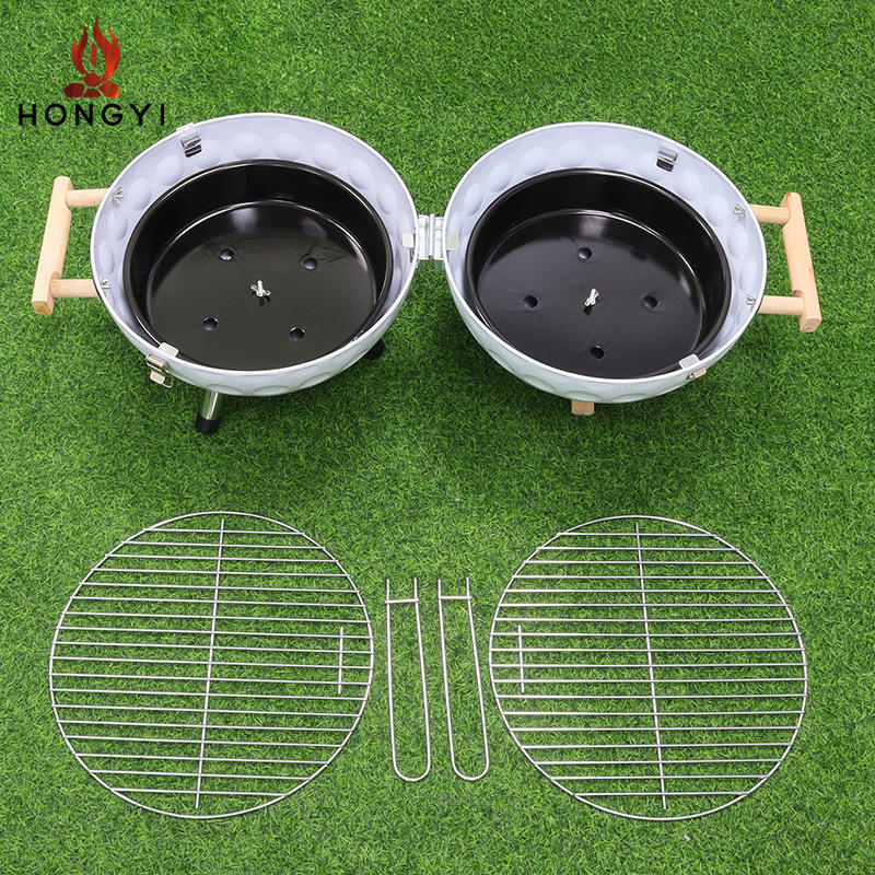 เตาบาร์บีคิวพับได้แบบพกพา HONGYI สแตนเลสทรงกลม สำหรับตั้งแคมป์กลางแจ้ง พร้อมฝาปิดอเนกประสงค์ รุ่น BQ05