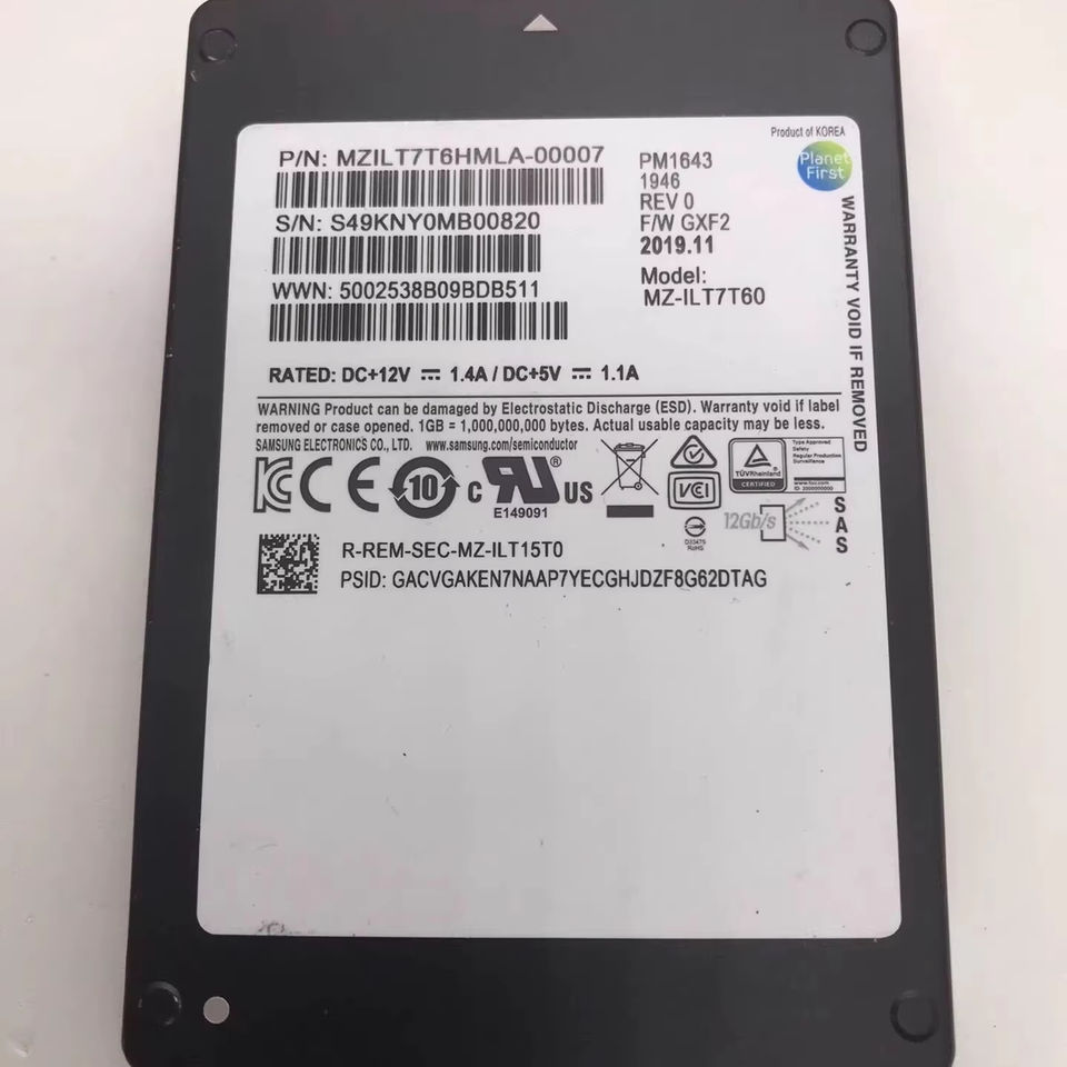 Horng Shing โซลิดสเตทไดรฟ์ใช้ MZILT7T6HMLA-00007 PM1643 SAS 7.68T SATA 6Gbps SSD