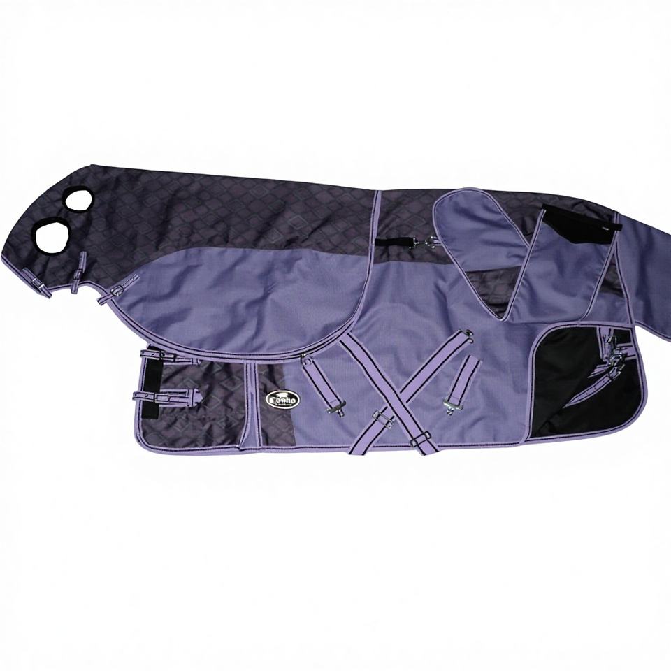 พรมม้าพร้อมฮู้ดและกระเป๋าหางทำบนผ้า1200DNR 600ยางกันน้ำระบายอากาศภายในโพลีฟีลด์พร้อม Tafta