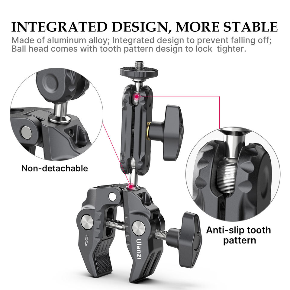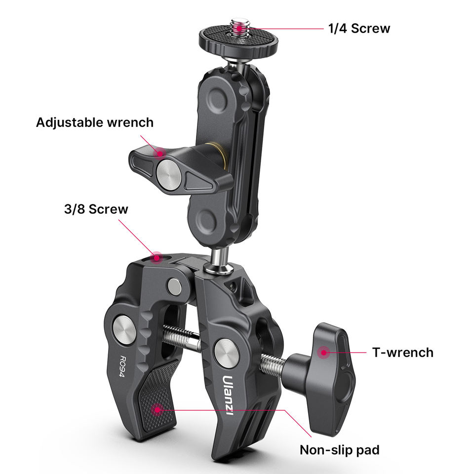 คลิปหนีบโลหะ HOSHI Ulanzi R094 พร้อมหัวบอลคู่ แขนจับอเนกประสงค์ ขนาด 1/4 นิ้ว และ 3/8 นิ้ว สำหรับกล้อง จอภาพ และไฟ LED