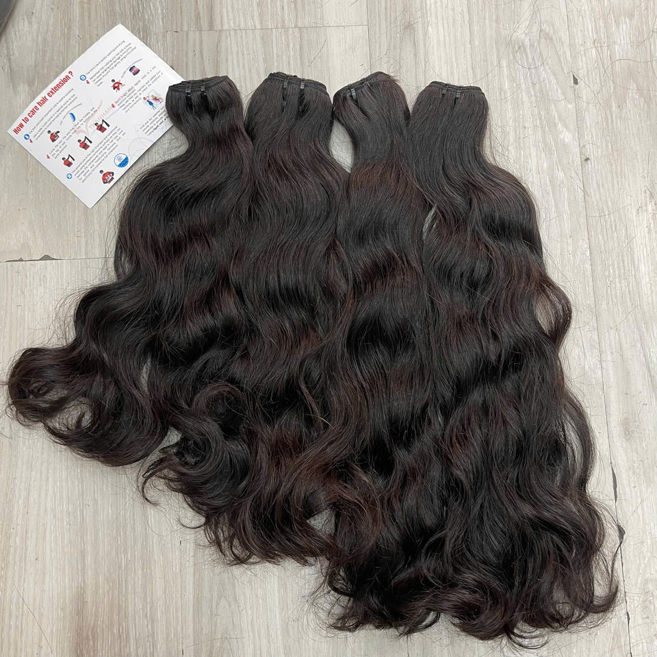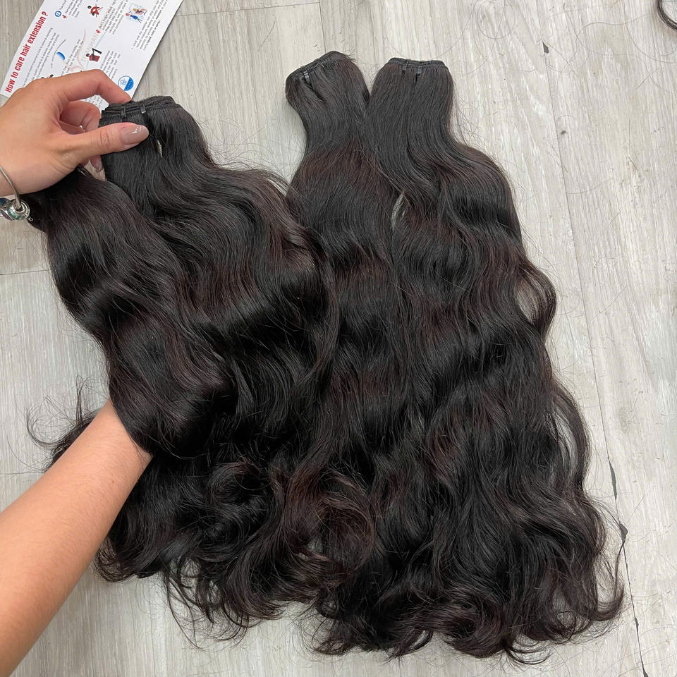 HOT ITEM Unprocessed Hair Vietnamese Human Hair Extensions Natural Wavy Weft Double Drawn End Ready to Ship Big Vendor