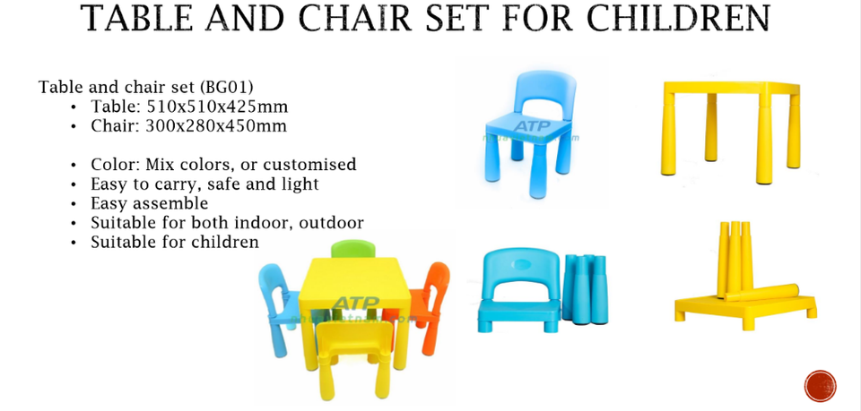 ชื่อผลิตภัณฑ์:ชุดโต๊ะและเก้าอี้สำหรับเด็ก