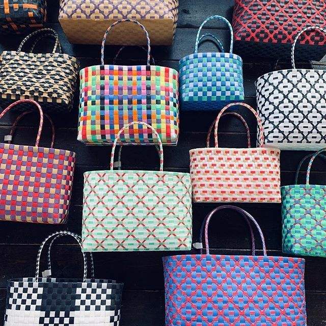 ขายดีกระเป๋าโท้ทลายดอกบัวสีน้ำเงิน2025ทอมือพลาสติกสีสันสดใสมีสไตล์ตลาดสำหรับชายหาดและการเดินทาง