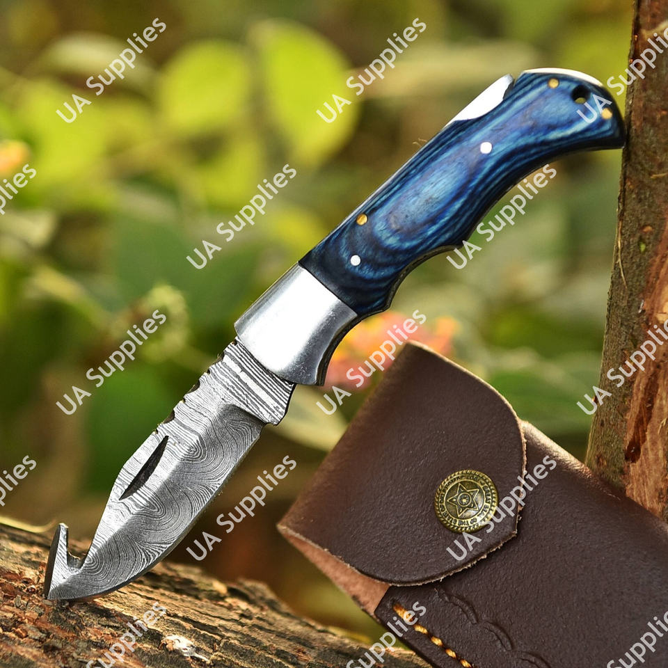 มีดพับทำมือ DIY คุณภาพระดับมืออาชีพ เหล็กดามัสกัส ปลายมีดแบบ Drop Point พร้อมระบบล็อคด้านหลัง ด้ามไม้ Pakka รับผลิตแบบ ODM OEM ลดราคาพิเศษ