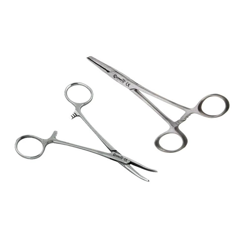 Goraya เยอรมันชุด2ชิ้น5ตรง + คีมล็อกโค้งมีที่หนีบเหล็กสแตนเลสผ่านการรับรองมาตรฐาน ISO