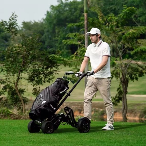 รถเข็นกอล์ฟลดราคาพิเศษ ล้อสี่ล้อ ขนาด 10 นิ้ว พับได้ น้ำหนักเบา กำลังไฟ 1600 วัตต์ สกู๊ตเตอร์ไฟฟ้าสำหรับกอล์ฟ ประสิทธิภาพสูง