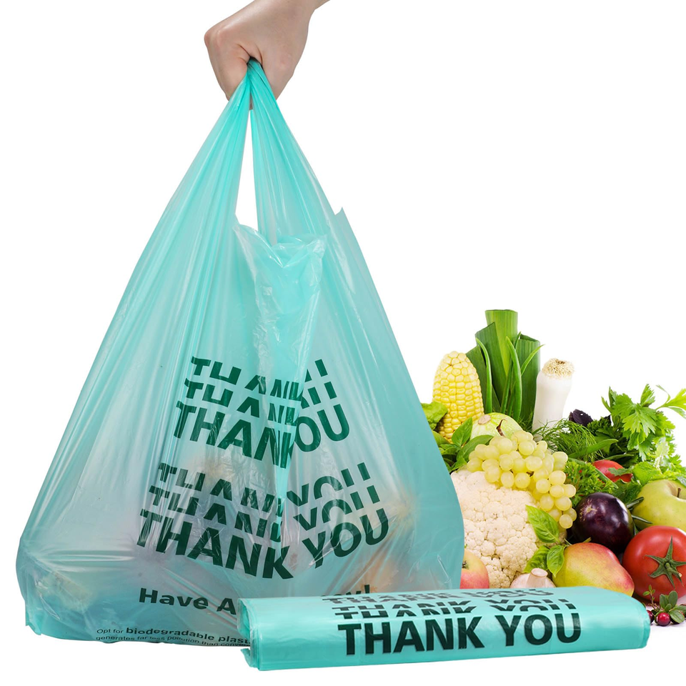 ถุงพลาสติกช้อปปิ้งรีไซเคิล ldpe/hdpe ถุงเสื้อยืดที่มีการพิมพ์กราเวียร์สำหรับซูเปอร์มาร์เก็ต