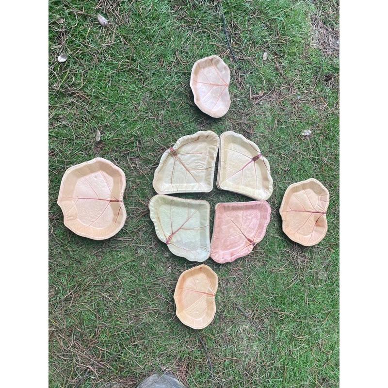 จานใบองุ่นทะเลจานสำหรับใส่ใบองุ่นทะเลจานสำหรับปิกนิก Areca ใบปาล์มทะเลองุ่นเวียดนามบัวสีฟ้า