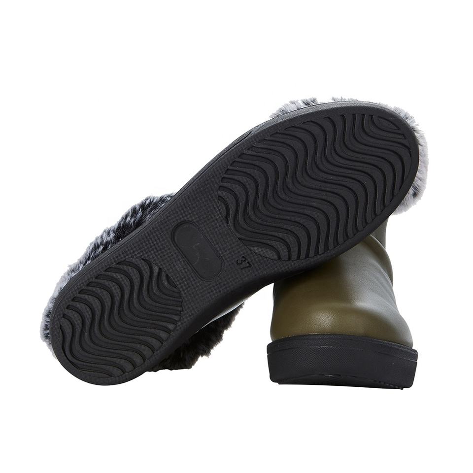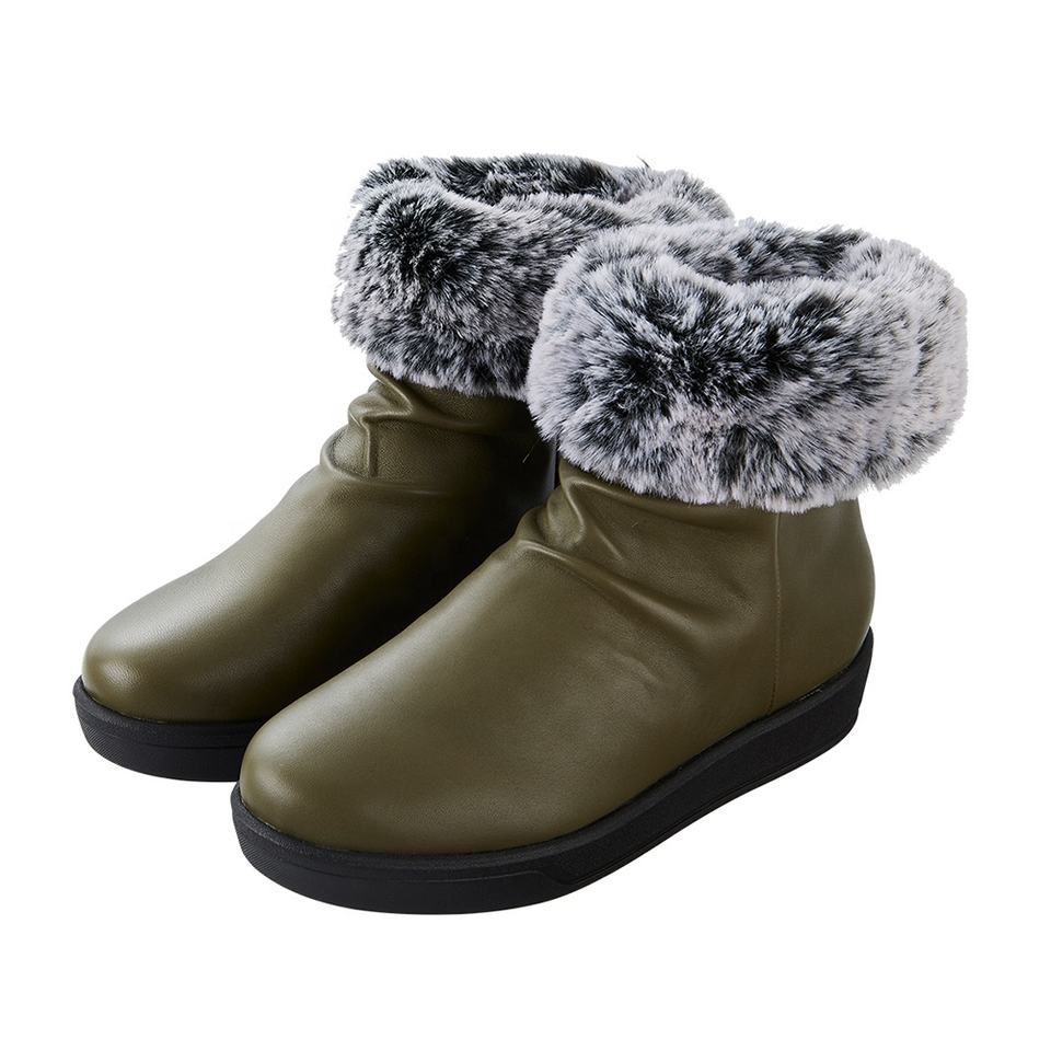 ขายดีรองเท้าหุ้มข้อหนังแกะสีมะกอกของผู้หญิงรองเท้าหิมะรองเท้าส้นตึกปลอกคอขนสัตว์ใส่สบายกันลื่น