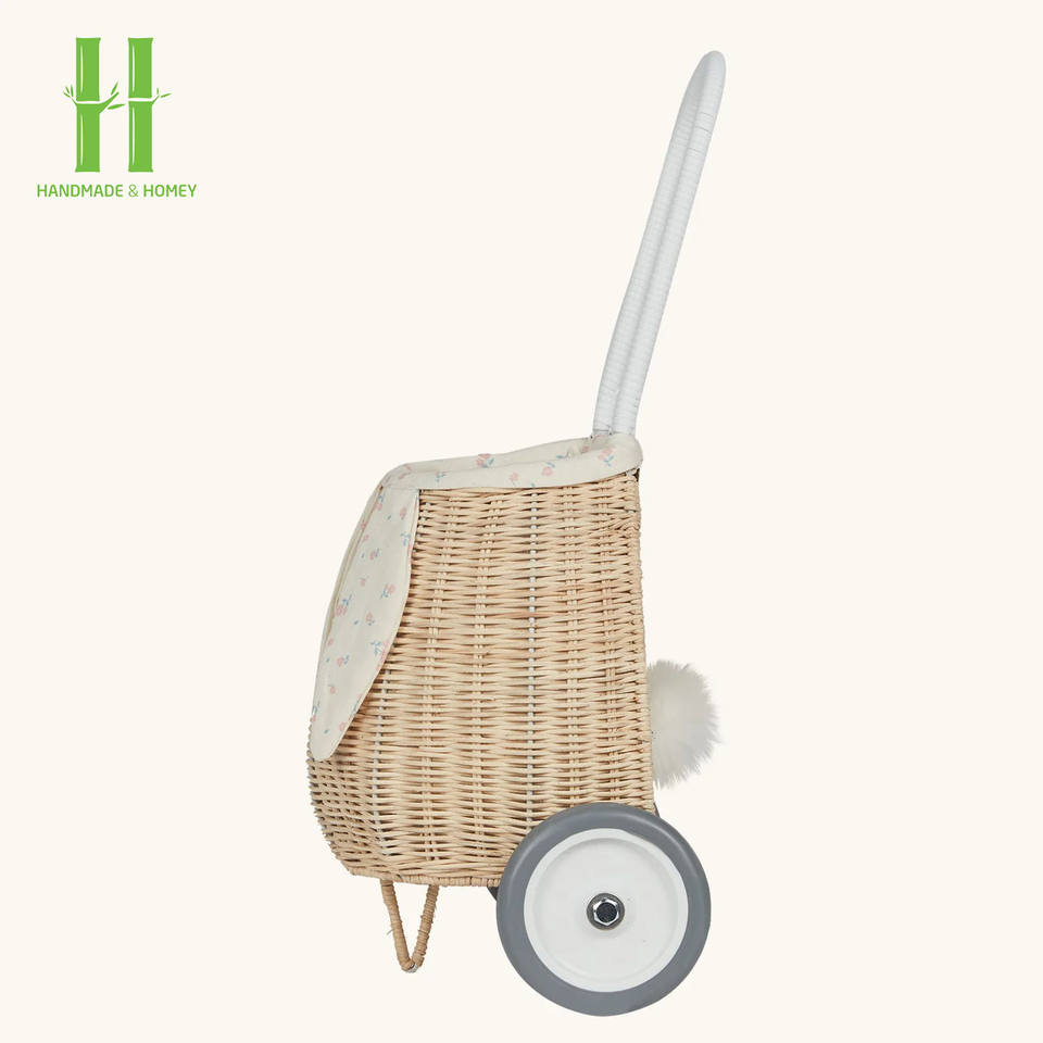 HOT SELLER Handwoven Rattan Wagon for Kids Trendy Rattan Kids Toys Eco Friendly Wicker Doll Wagon Hand Carts Trolley