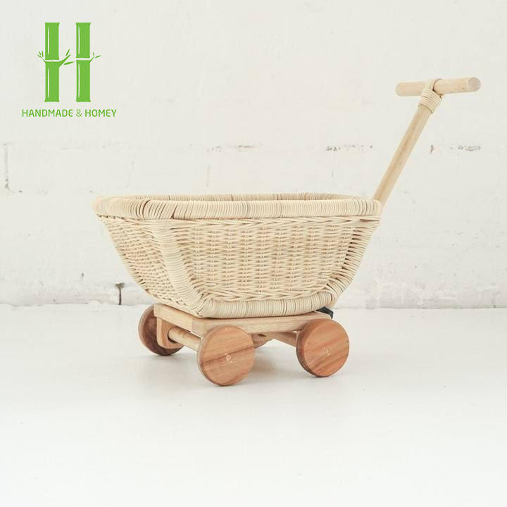 สินค้าขายดี ผลิตจากหวายธรรมชาติ รถเข็นตุ๊กตาเด็ก ของเล่นผลไม้และผักสำหรับเด็ก ทำด้วยมือในเวียดนาม