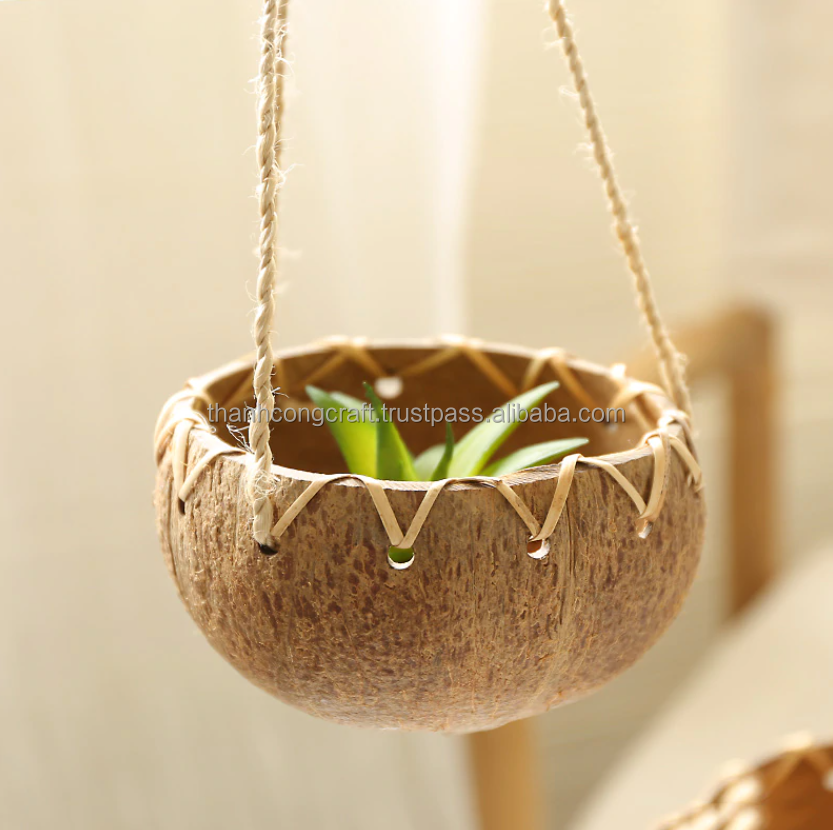 ร้อนขาย100% อินทรีย์หม้อกะลา/กะลามะพร้าวหม้อแขวนสำหรับพืชและดอกไม้
