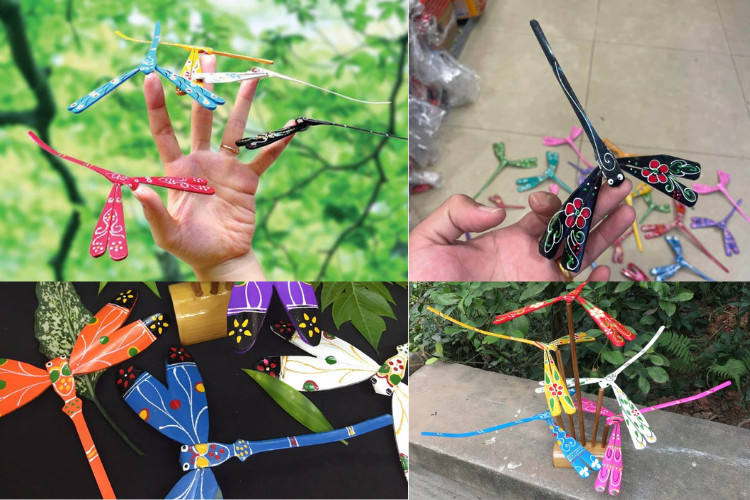แมลงปอไม้ไผ่ขายดี ใช้สำหรับตกแต่งเชิงวัฒนธรรมและงานฝีมือ สำหรับการผลิตจำนวนมาก ประเทศเวียดนาม