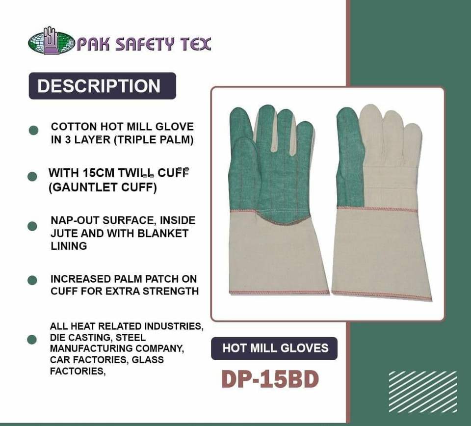ถุงมือทำงานผ้าคอตตอนแบบ3ใบน้ำหนัก31ออนซ์สีเขียว