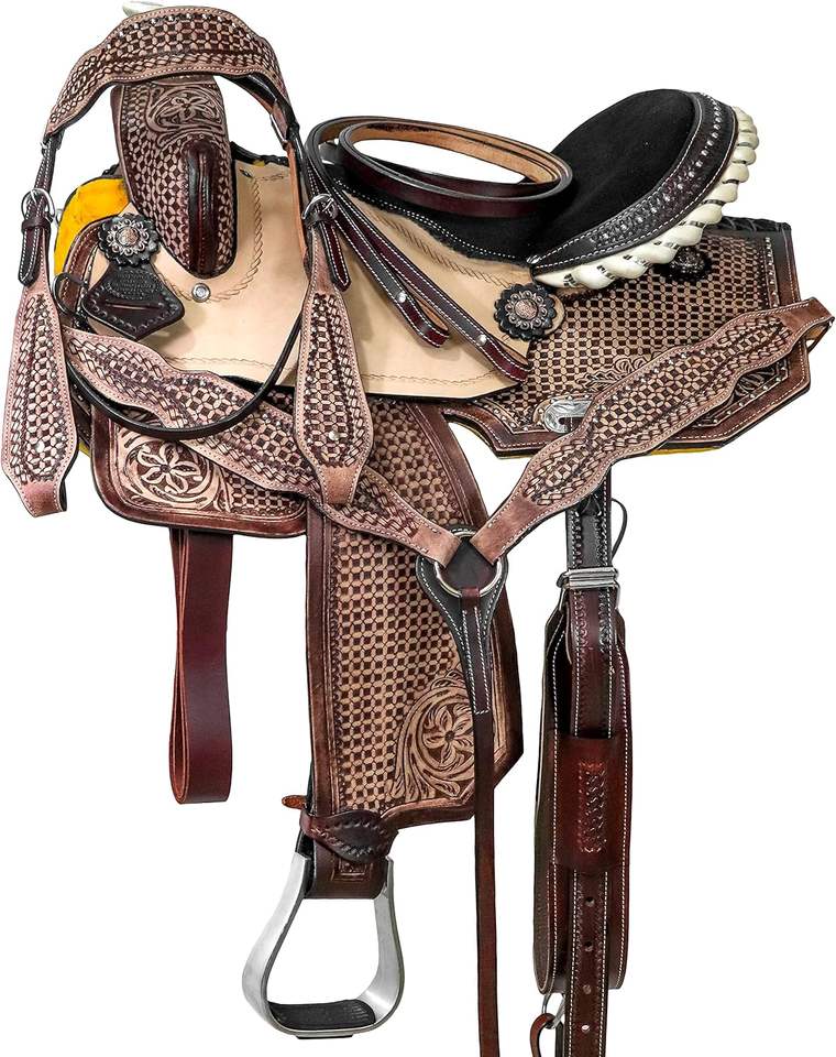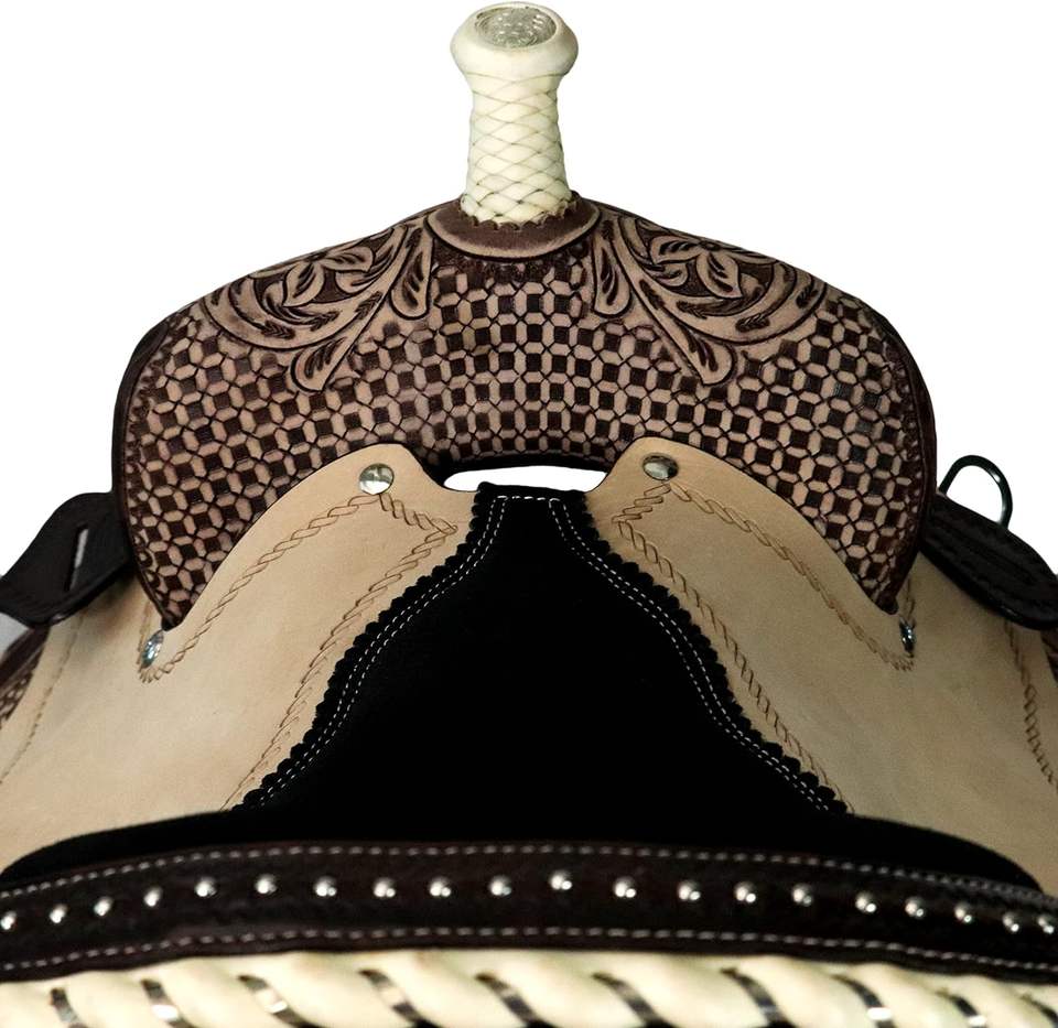 อานม้าหนังแท้แบบตะวันตกอานแบบสบายทำจากหนังสีดำ100% อานอานม้าอังกฤษ
