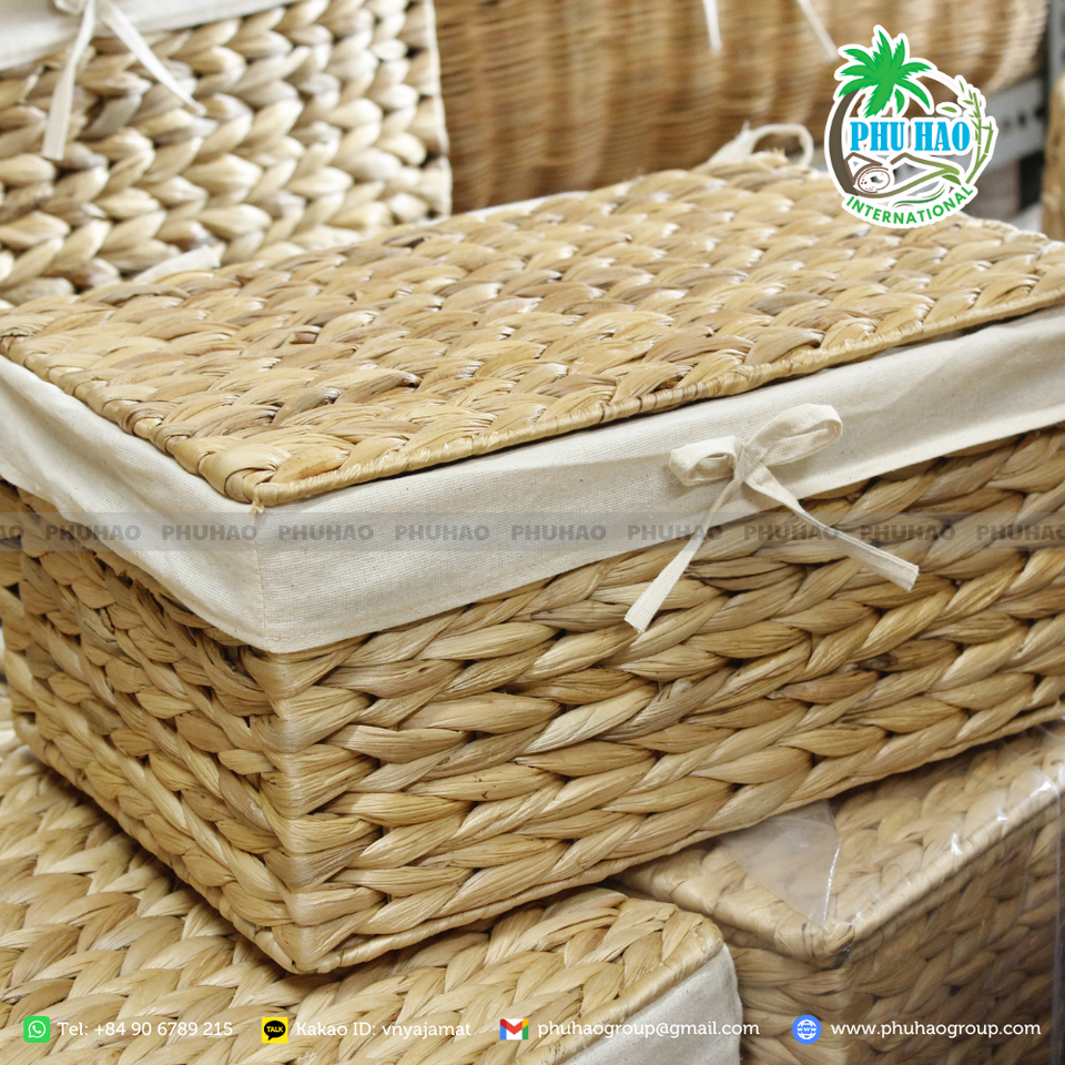 ตะกร้าทรงสี่เหลี่ยมหญ้าทะเลพร้อมฝาปิดเหมาะสำหรับห้องครัว