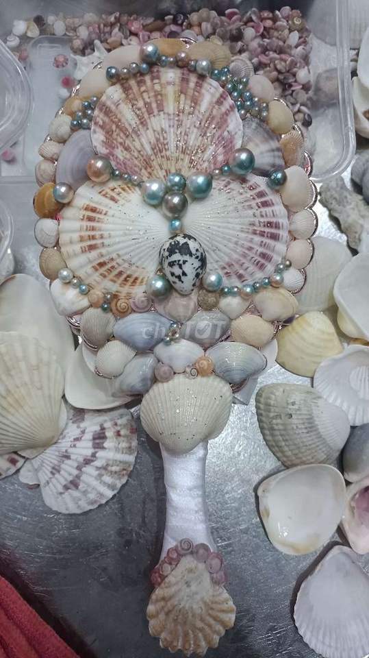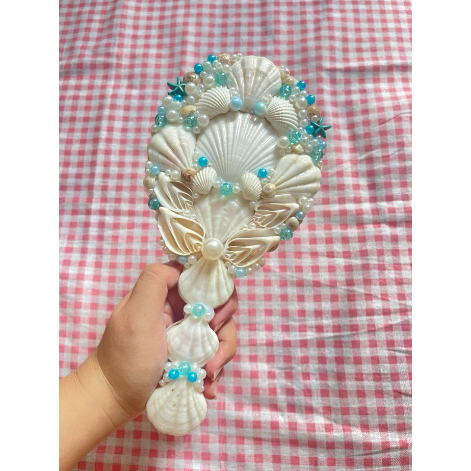 กระจกเปลือกหอยกระจกแต่งหน้าแบบพกพาสุดหรูสำหรับใช้ในชีวิตประจำวันการตกแต่งของขวัญและการดูแลความงามแบบเวียดนาม