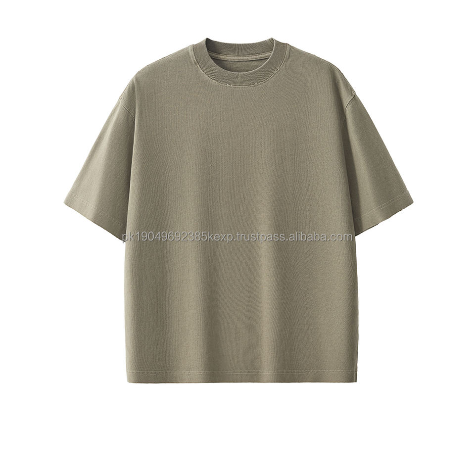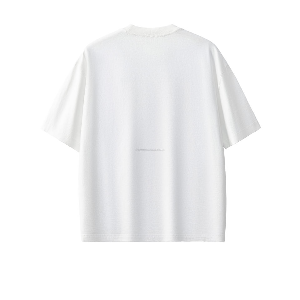 เสื้อยืดวินเทจลำลองสำหรับผู้ชาย ขายดี น้ำหนัก 280GSM สีพื้น ล้างสีแบบแอซิด พิมพ์ลายพัฟ