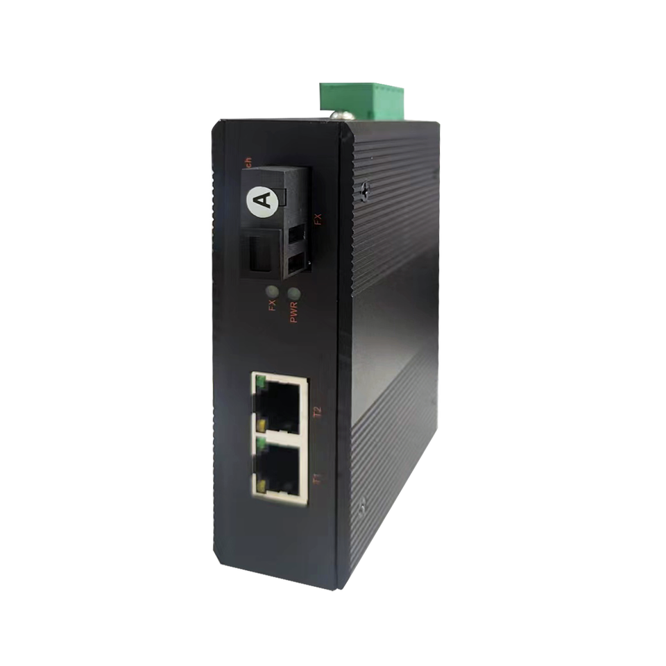 ตัวแปลงสื่อใยแก้วนำแสงขายดี 1 พอร์ตไฟเบอร์ + 2 พอร์ต RJ45 สวิตช์อีเธอร์เน็ตออปติคอลกิกะบิตอุตสาหกรรม SMF 20KM