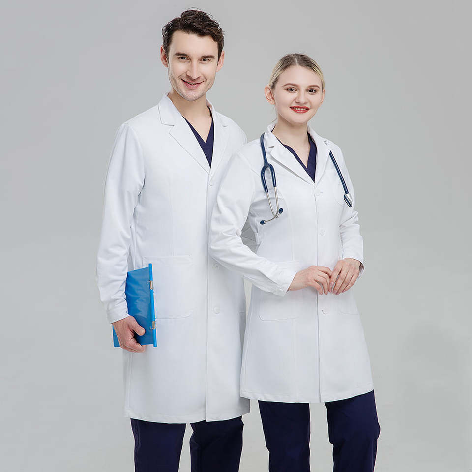 ชุดยูนิฟอร์มแพทย์หญิงขายส่งยอดนิยม ชุดสครับสีขาวแบบกำหนดเอง ผ้าถักผสมผ้าฝ้ายและโพลีเอสเตอร์ สำหรับใช้ในโรงพยาบาล