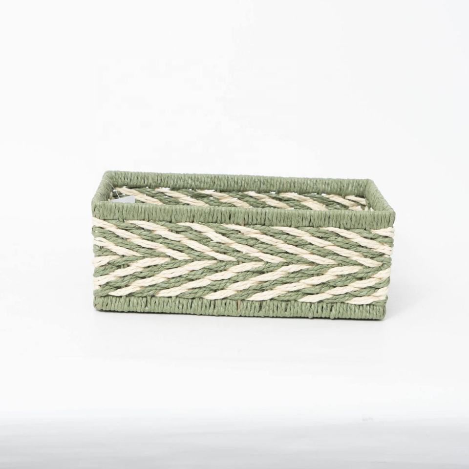 ชุดตะกร้าสานทรงสี่เหลี่ยมผืนผ้าสีเขียว 3 ใบ รุ่น HOT เป็นมิตรกับสิ่งแวดล้อม สไตล์วินเทจ สำหรับจัดเก็บของตกแต่งบ้าน Viettimecraft