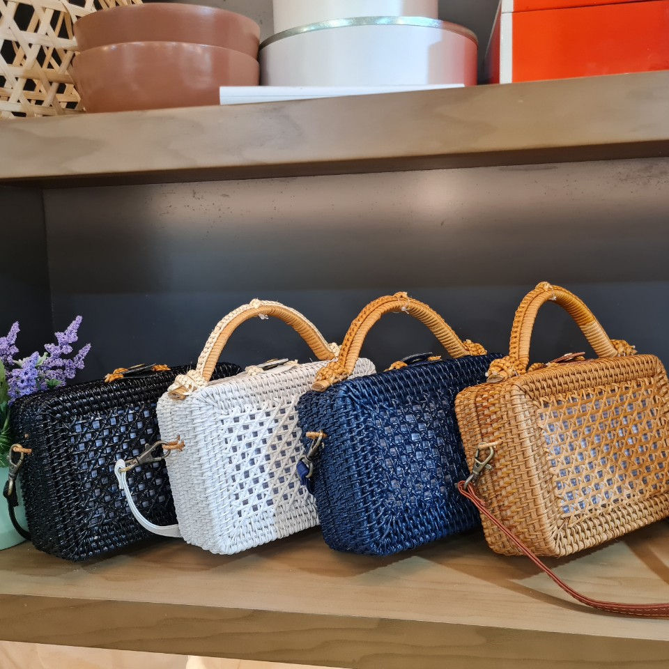 กระเป๋าสะพายไหล่หวายผู้หญิง รุ่นฮิตปี 2023 กระเป๋าฤดูร้อน ทรงสี่เหลี่ยมผืนผ้า ทำจากหวายถัก
