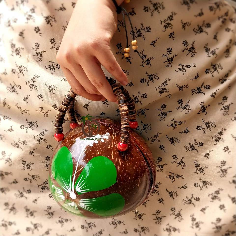กระเป๋าหนังมะพร้าวสำหรับสุภาพสตรีทำจากเปลือกมะพร้าวทำด้วยมือ Coco-Eco ในเวียดนาม