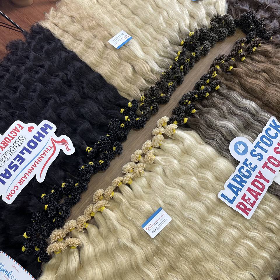 ผมเคราตินต่อปลายแหลมรูปตัวยูติดเทรนด์ผมมนุษย์เป็นลอนธรรมชาติคุณภาพสูงใช้งานง่าย
