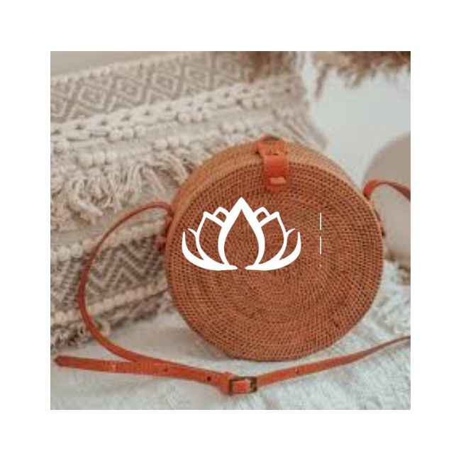 กระเป๋าหวายทรงกลมที่ไม่ซ้ำใครเป็นมิตรกับสิ่งแวดล้อม2024แฟชั่นใหม่สำหรับผู้หญิงดอกบัวสีน้ำเงินจากเวียดนาม