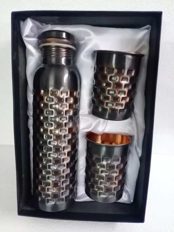 ที่ร้อนแรงที่สุดขายเพชรการออกแบบทองแดงขวดน้ำที่มีชุดของสองแก้ว H2O ขวดขวดทองแดงโบราณ