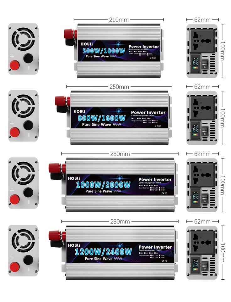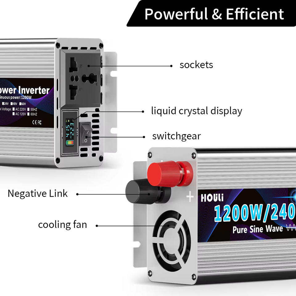 อินเวอร์เตอร์ HOULI 1000W/500W คลื่นไซน์บริสุทธิ์ แบบเฟสเดียว ขนาดเล็ก | ตัวแปลงไฟ 12V DC เป็น 220V AC แบบพกพาสำหรับรถยนต์ รถบ้าน และการตั้งแคมป์