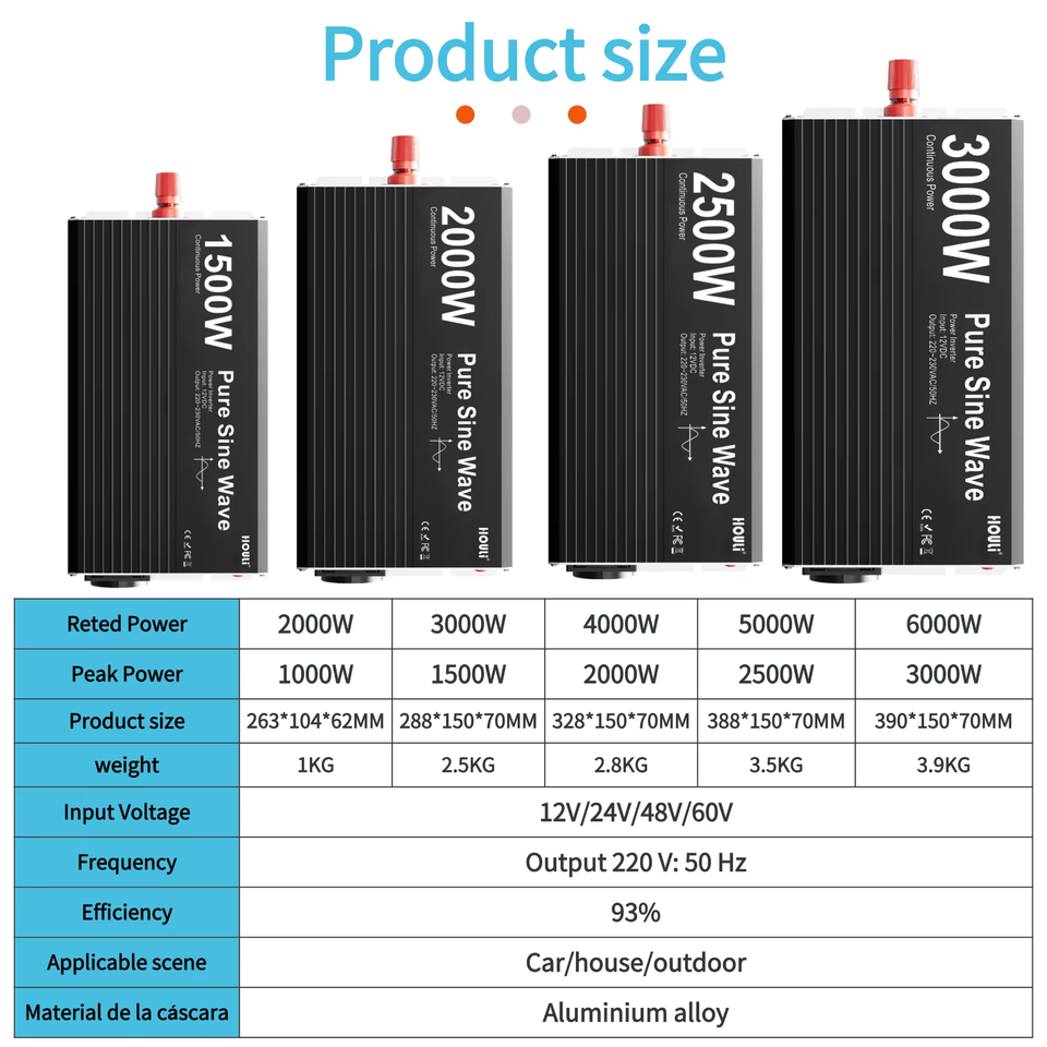 HOULI 3000W Car Power Pure Sine Wave DC AC Inverter 12v 220v 2000w 12V/24v Inverter Off Grid Inverter