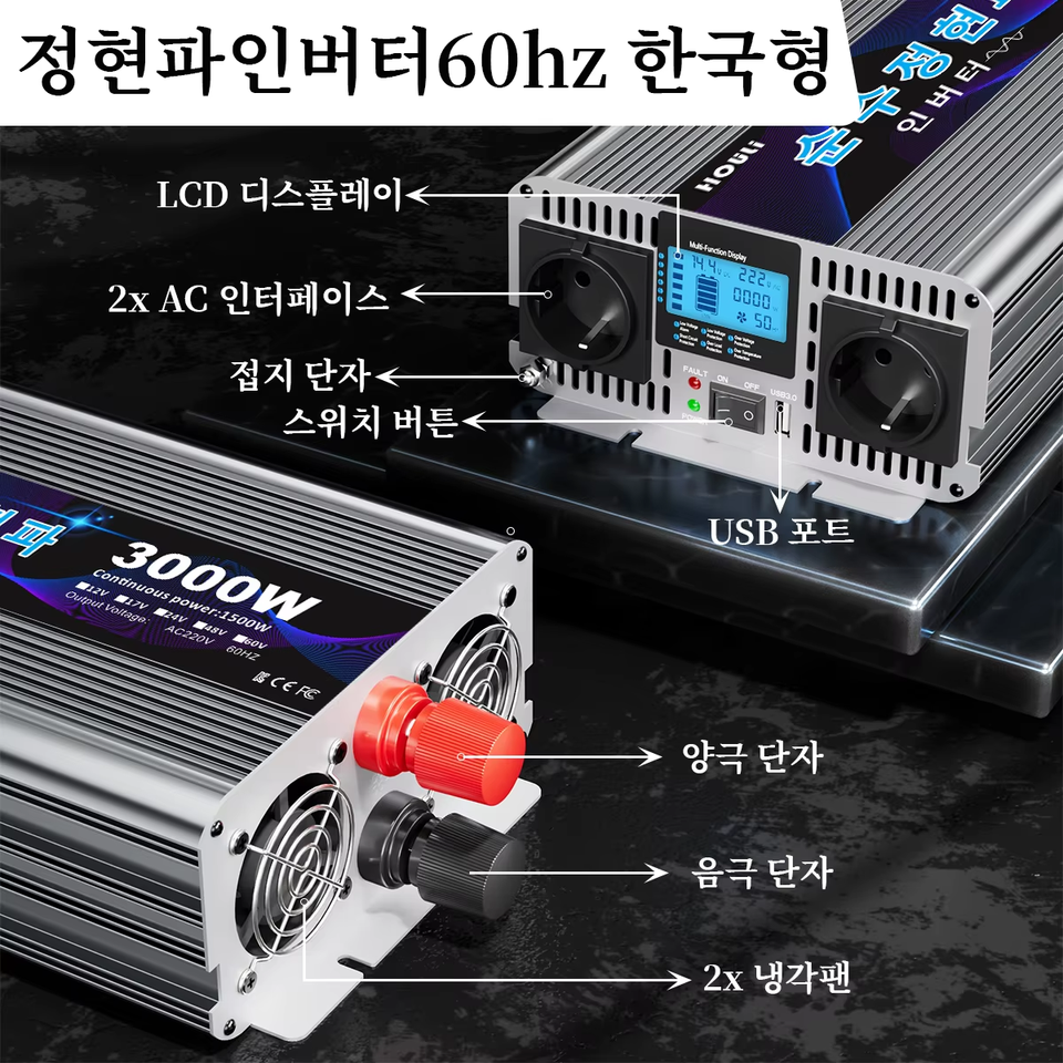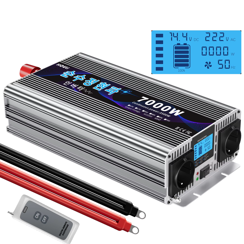 อินเวอร์เตอร์ HOULI 7000W คลื่นไซน์บริสุทธิ์ 12V/24V/48V/220V สำหรับรถยนต์ แคมป์ปิ้ง และใช้ในกรณีฉุกเฉิน (จัดส่งจากคลังสินค้าสเปน)