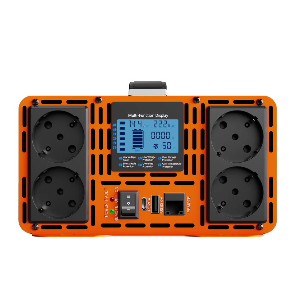 อินเวอร์เตอร์ HOULI แบบพกพา 4000W-10000W คลื่นไซน์บริสุทธิ์ 12V/24V/48V เป็น AC220V เฟสเดียว สำหรับใช้ในรถยนต์/รถบ้าน/บ้าน