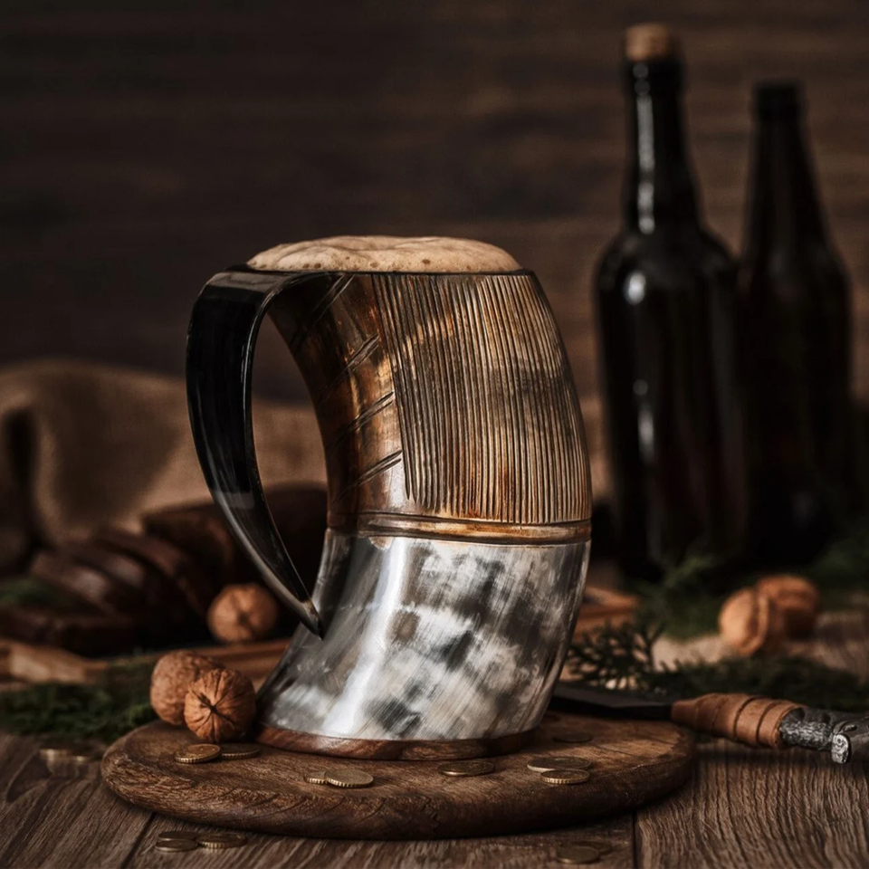 แก้วน้ำทำมือจากเขาควายสไตล์ไวกิ้ง ดีไซน์ใหม่สำหรับเบียร์และกาแฟ แก้วน้ำเขาควายธรรมชาติ