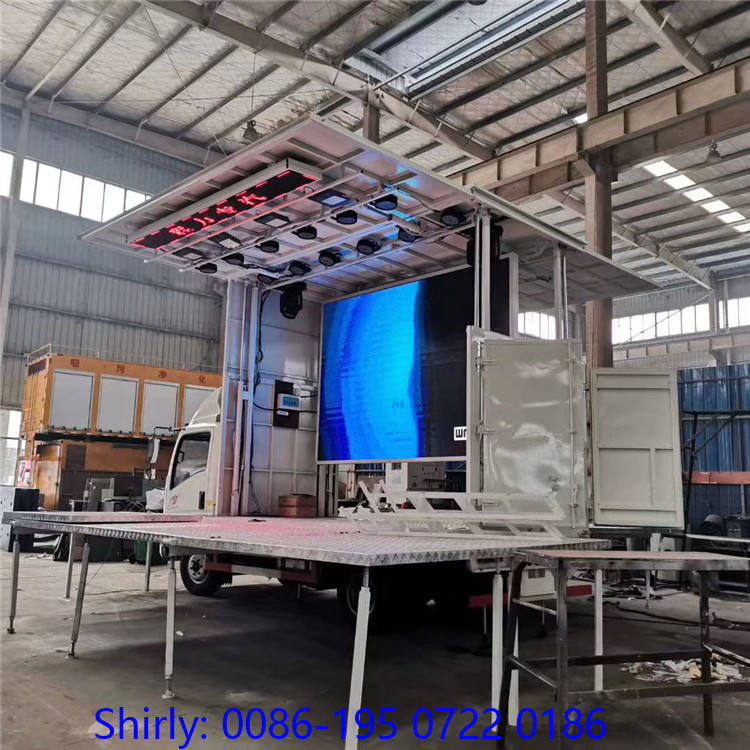 รถบรรทุกเวทีเคลื่อนที่ HOWO 4x2 ดีเซล เกียร์ธรรมดา พร้อมจอ LED ลำโพง และไฟ สำหรับงานคอนเสิร์ต