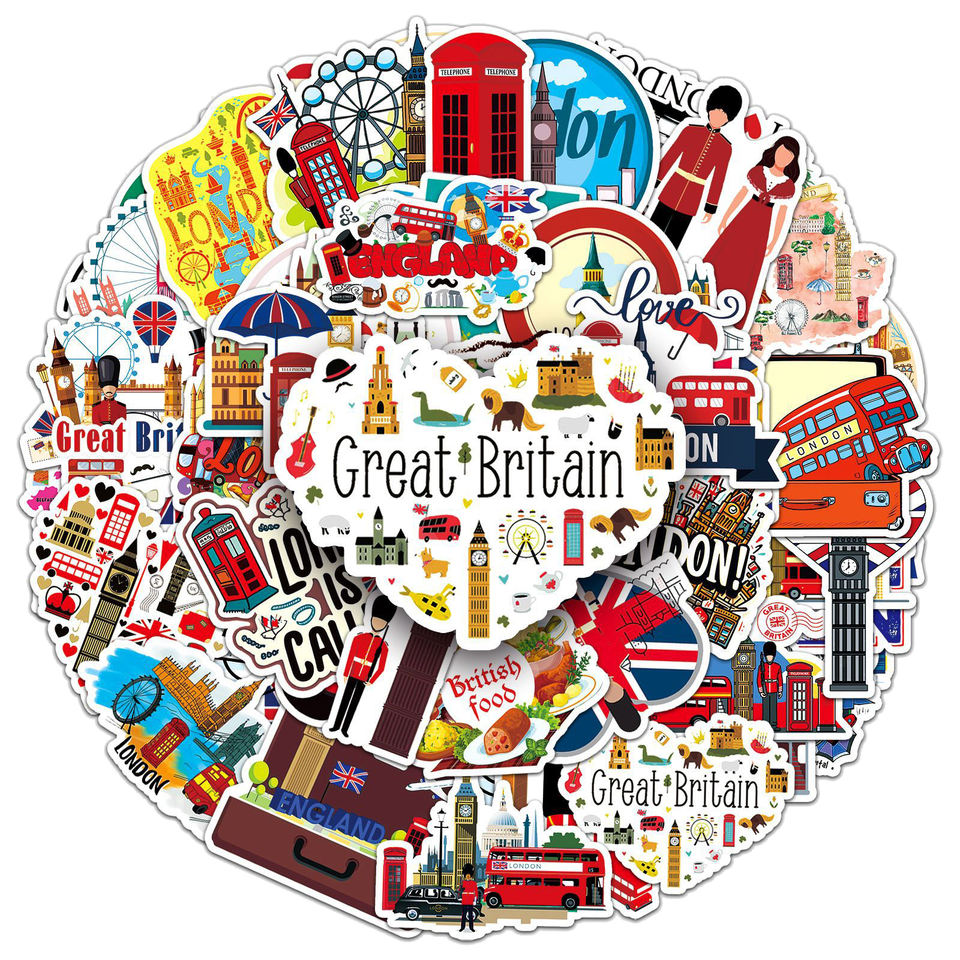 สติกเกอร์ HOYO เกรทบริเตน ขายส่ง สติกเกอร์อังกฤษ สหราชอาณาจักร ลอนดอน เทมส์ บิ๊กเบน รถบัสสีแดง เคมบริดจ์ สติกเกอร์กันน้ำ