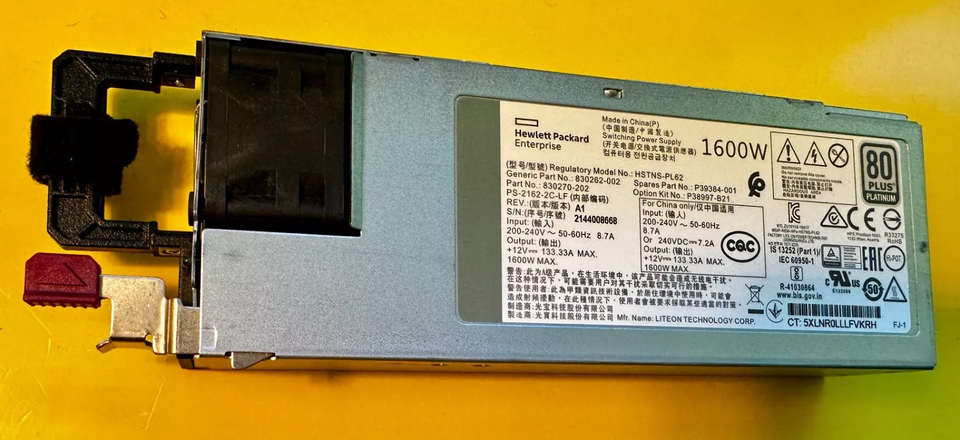 HPE 1600W ชุดแหล่งจ่ายไฟแบบแพลตตินัมปลั๊กฮาโลเจนต่ำ P38997-B21 P39384-001 830262-002 830270-202 ProLiant PLUS